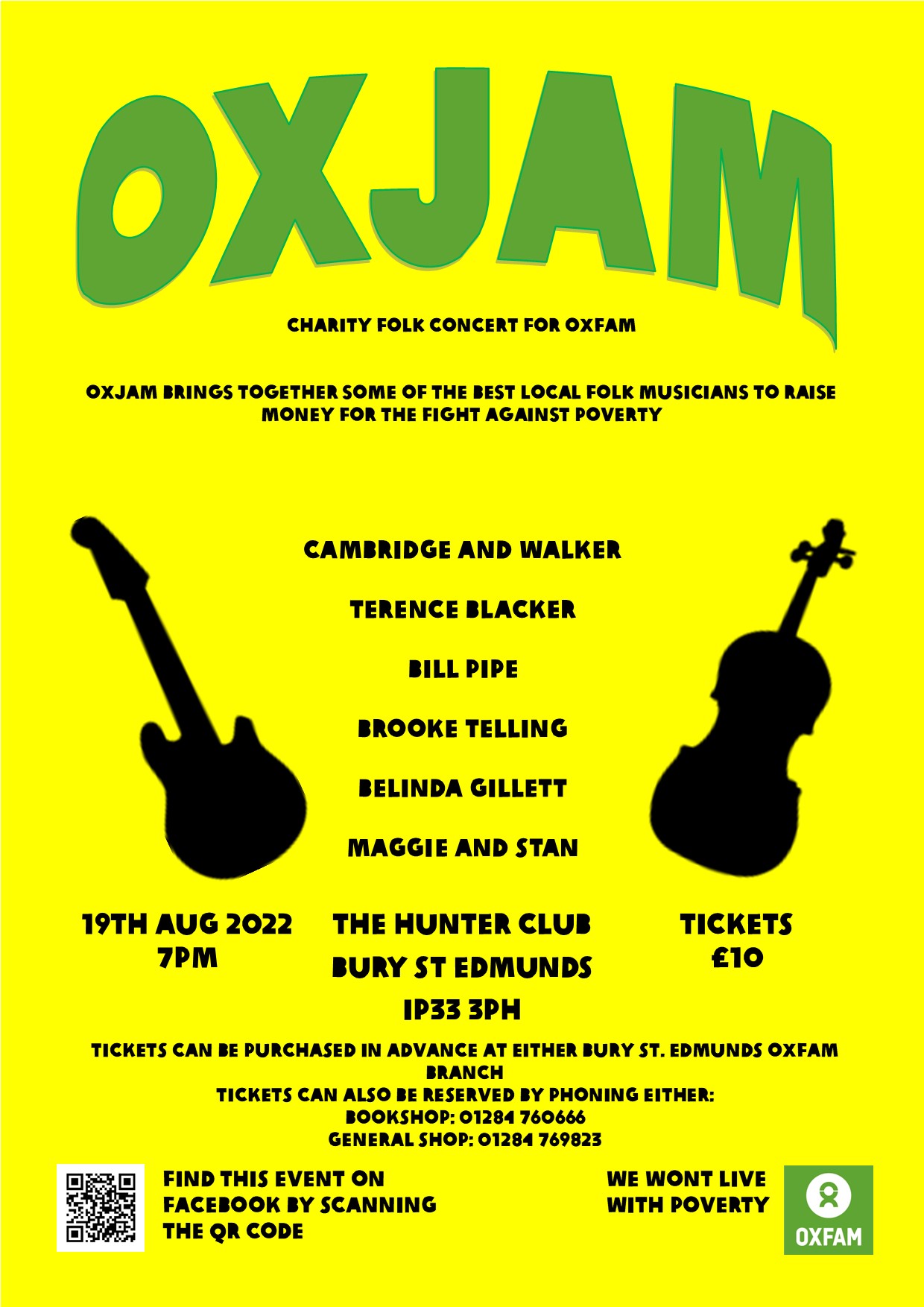 Maggie and Stan are doing a concert spot at this great event in support of Oxfam's fight against poverty. Other artists are Cambridge and Walker, Terence Blacker, Bill Pipe, Brooke Telling and Belinda Gillet. The concert takes place at Hunter Club, 6 St Andrews Street South, Bury St Edmunds, Suffolk, IP33 3PH, starting at 7pm. Entry price is £10.00 and advance tickets are available from the two Bury Oxfam shops (or can be reserved from the same shops by phoning 01284 760666 or 01284 769823). To view the official poster click here .